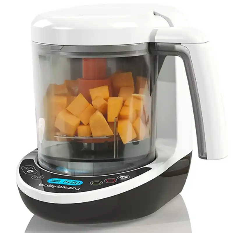 Përgatitja e ushqimit të foshnjës në shtëpi bëhet e lehtë dhe e shpejtë me Baby Brezza One Step Baby Food Maker Deluxe. Ky aparat ngroh dhe përzien ushqimin automatikisht në të njëjtën tas me një buton, pa pasur nevojë të transferoni ushqim të nxehtë. Brenda 10 minutash, mund të përgatitni ushqim të shëndetshëm dhe të shijshëm për foshnjën.