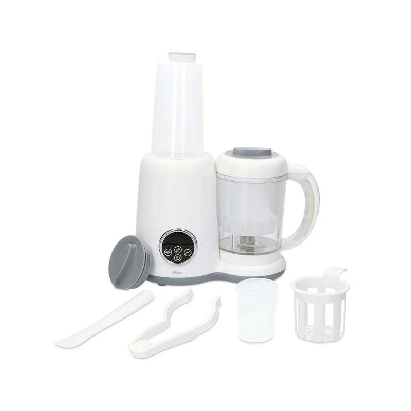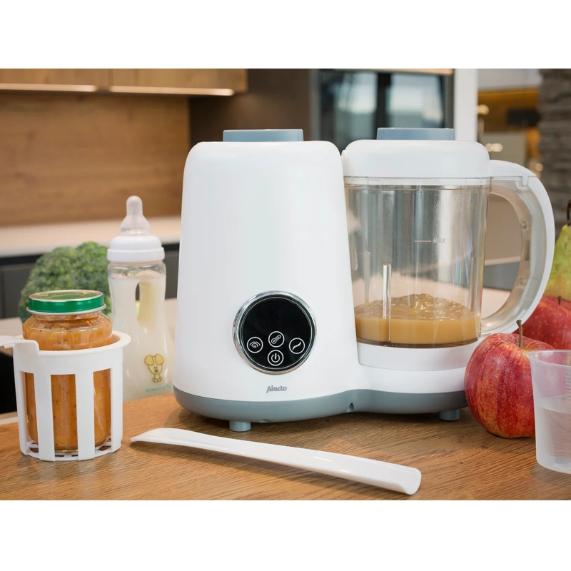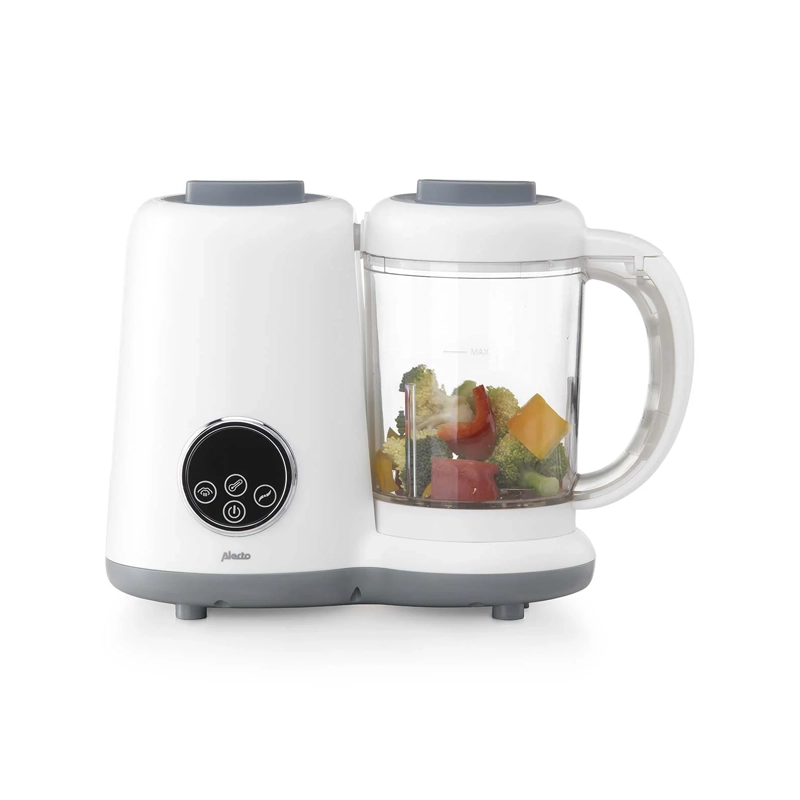 Ju dëshironi t’i siguroni foshnjës tuaj fillimin më të mirë në jetë, me produktet më ushqyese dhe të shëndetshme. Është shumë më e lehtë nëse këto vakte të shijshme mund t’i përgatisni shpejt dhe me lehtësi, krahas detyrave të tjera të përditshme. Me këtë blender për foshnja mund të përgatisni fruta, perime dhe shishe menjëherë sapo foshnja ka oreks. Përdorimi është shumë i larmishëm, sepse përveç përgatitjes, mund të sterilizoni gjithashtu objektet si biberona dhe shishe. Një detaj i këndshëm: pajisja fiket automatikisht pas 40 minutash, kështu që nuk ka rrezik nëse harroni ta lini ndezur. Kjo ndodh shpesh kur foshnja zgjohet e uritur, por njëkohësisht ka nevojë për një pelena të pastër. Me mjetet e duhura si kjo blender, prindërit mund të bëhen të gjithëkapshëm.