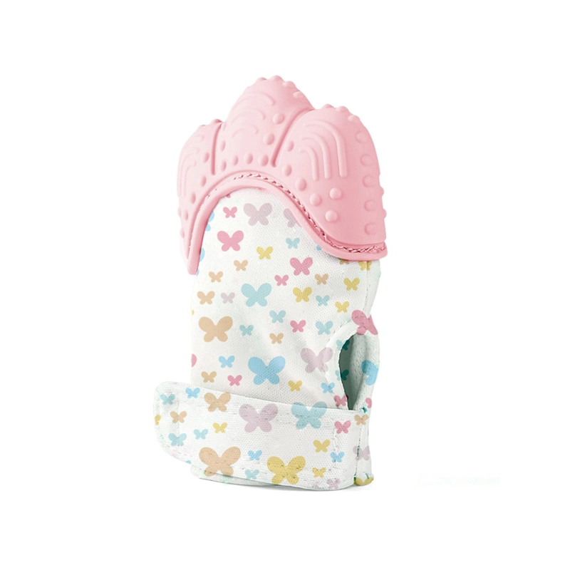 Përditësoni aksesorët bazë të bebes tuaj me këtë dorezë për daljen e dhëmbëve. E përshtatshme për t’u përdorur në të dyja duart, kjo dorezë ka një panel silikoni me teksturë, të sigurt për ushqim, me sipërfaqe të ndryshme që fëmija mund t’i kafshojë për të qetësuar mishrat e dhëmbëve.