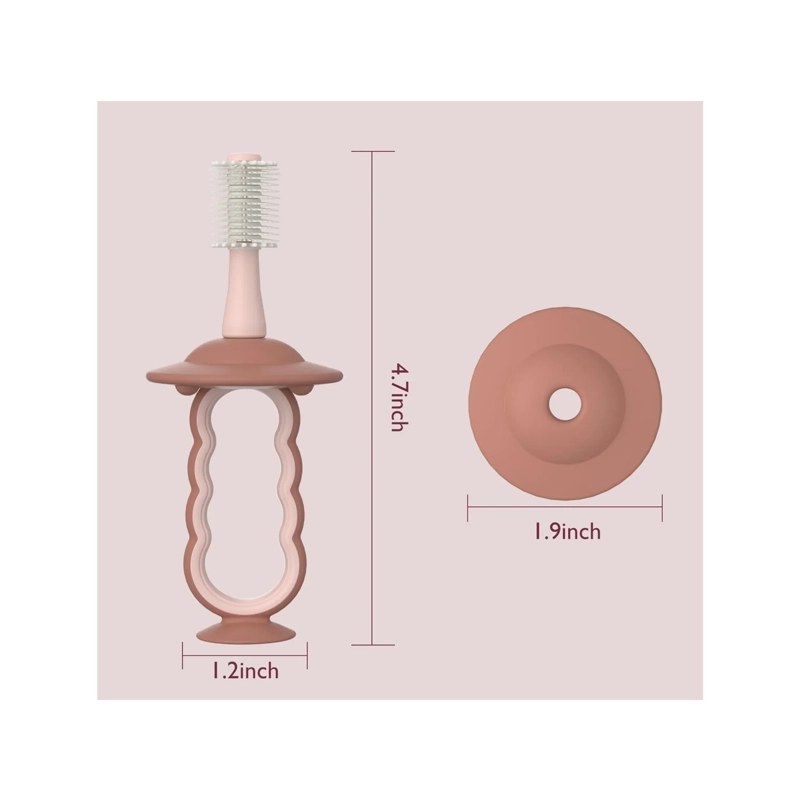 - Furça e silikonit 360° – Furça jonë e dhëmbëve të foshnjës është e pajisur me qime rrethuese 360°, mund të pastrojë me efikasitet dhëmbët e foshnjës, materiali i butë premton të jetë i butë me mishrat delikate të foshnjës