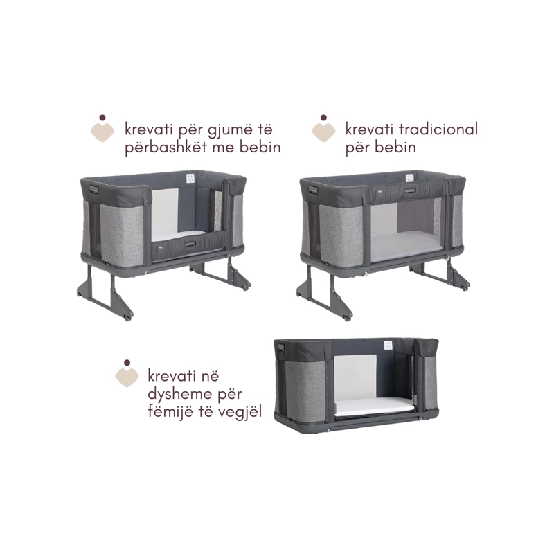 Zgjidhja ideale 3-në-1 për gjumin, që lejon prindërit të përdorin cosleeping aq gjatë sa dëshirojnë, deri në 4 vjet, duke siguruar gjumë më të qetë për prindërit dhe foshnjën, me siguri totale falë sistemit të patentuar. Në një produkt të vetëm, prindërit gjejnë 3 funksionalitete të ndryshme: cosleeping, krevat deri në 4 vjet, krevat tradicional dhe krevat në nivelin e tokës për fëmijë të vegjël.