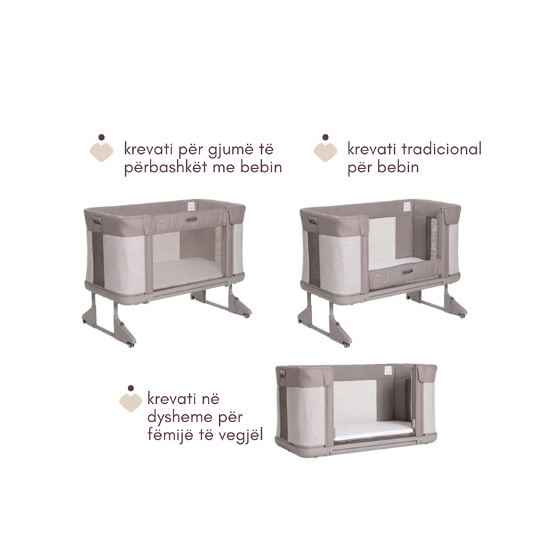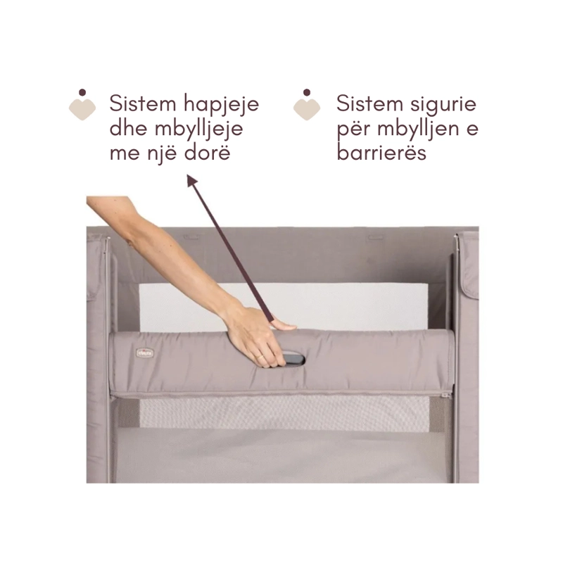 Krevat/kolibëja Chicco Next2Me Forever për cosleeping mund të përdoret nga lindja deri në 4 vjeç, me 3 funksionalitete të ndryshme. Ai mund të transformohet lehtësisht në një krevat tradicional thjesht duke hapur barrierën anësore, ose në një krevat në nivelin e tokës për fëmijë të vegjël, thjesht duke hequr këmbët dhe barrierën anësore, duke ndjekur rritjen e foshnjës deri në 4 vjeç.