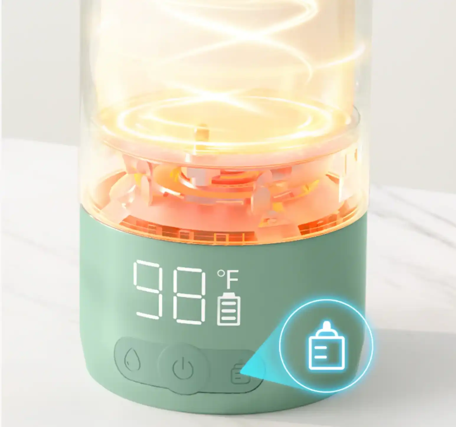 Është me valë dhe karikohet plotësisht në vetëm 90 minuta dhe kyçet për të parandaluar rrjedhjen, duke e bërë atë shoqëruesin e përsosur të udhëtimeve për ushqyerjen e foshnjës. Falë mënyrave të tij të dyfishta të ngrohjes, është e lehtë për prindërit të kalojnë ndërmjet ngrohjes së qumështit të gjirit dhe ujit të ngrohtë për formulën, me ekranin e saktë virtual që tregon kur lëngu ka arritur temperaturën.