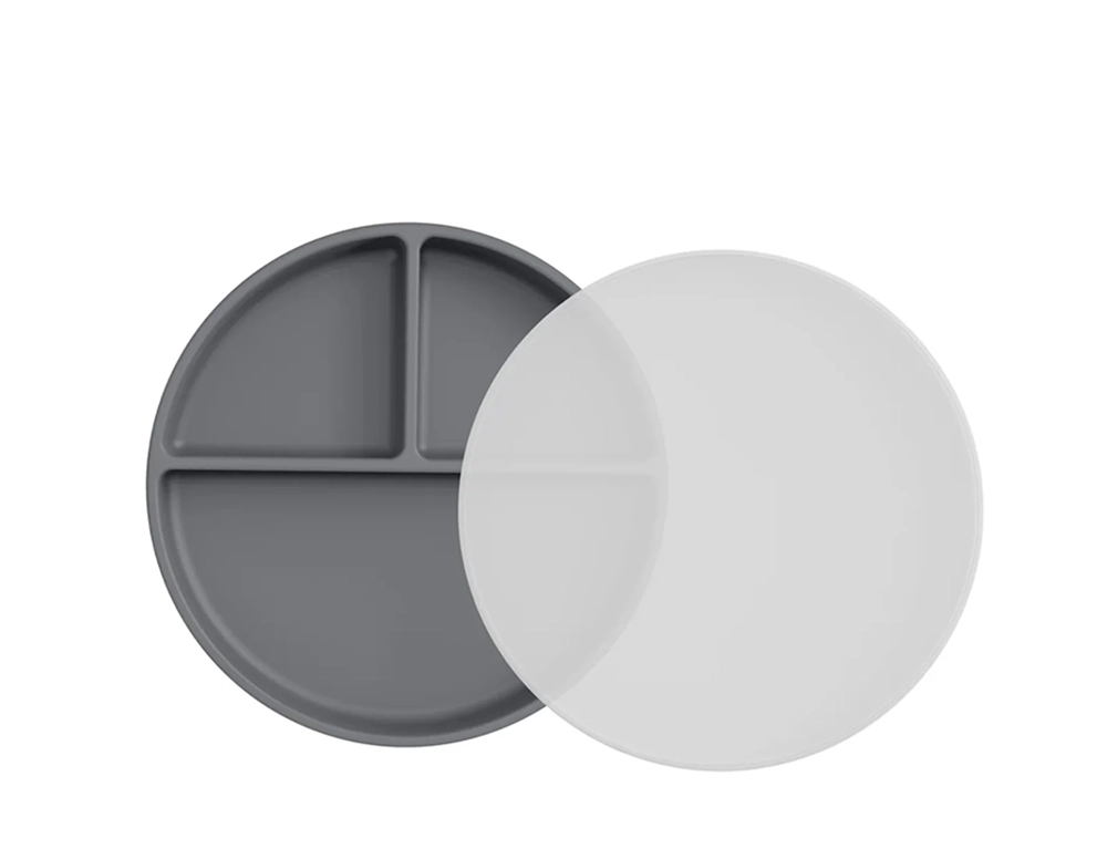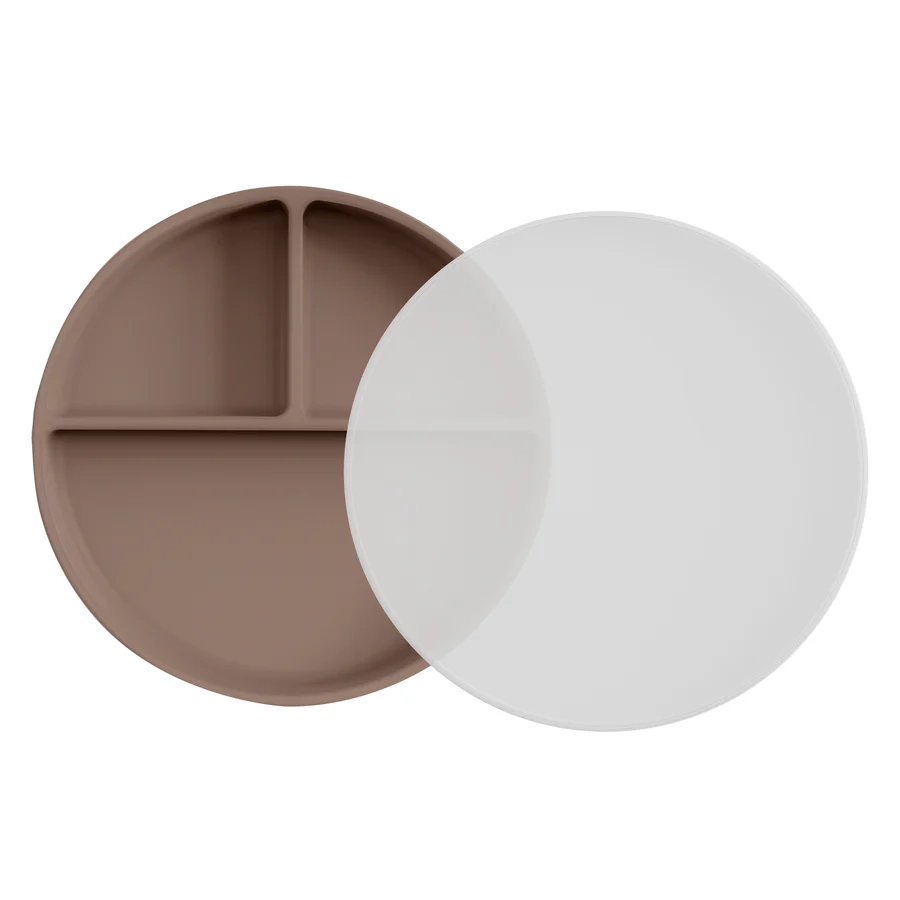 Pjatat thithëse prej silikoni 100% të gradës ushqimore me kapak janë jashtëzakonisht të dobishme për të mbajtur ushqimin në vend për fëmijët e rrëmujshëm dhe për të ruajtur mbetjet. Pjata e ndarë është me madhësi perfekte për porcionet e fëmijëve të vegjël dhe mjaftueshëm e fortë për të mbajtur ushqimin me njërën dorë. Një bazë thithëse ekstra e fortë e mban pjatën në vend, edhe nëse fëmija juaj i zgjuar bën një shpërthim inati!