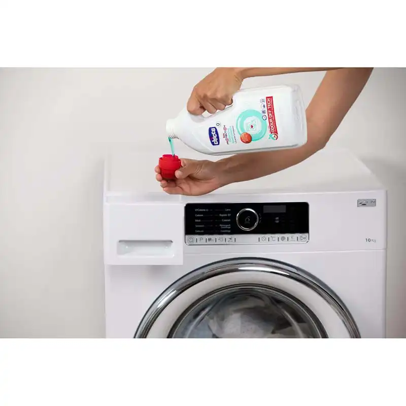 Detergjent higjienizues për rroba “Chicco – Hygienizing Laundry Detergent”, ndihmon në largimin e mikrobeve dhe baktereve për një dezinfektim të thellë të veshjeve të fëmijëve dhe të gjithë familjes.