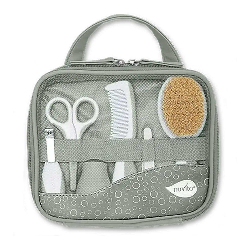 Seti përmban: furçë delikate me qime leshi natyral,krehër ergonomik me majë të rrumbullakosura,palë gërshërë me majë të rrumbullakosura,prerëse thonjësh,skedarë kartoni,aspirator nazal