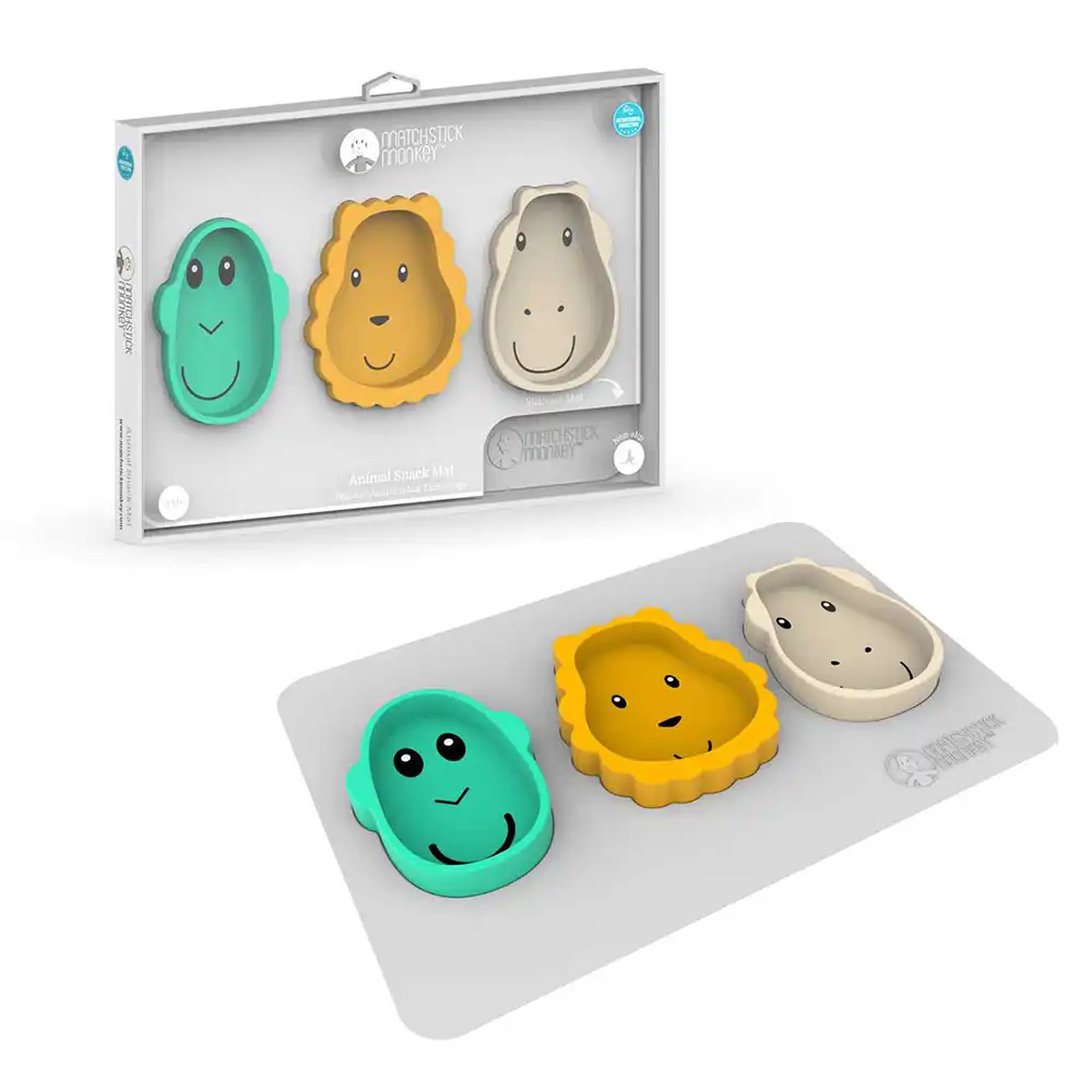 Matchstick Monkey Animal Snack Mat është një tapet praktik për ushqime, i krijuar për ta bërë ushqyerjen e vogëlushëve më të pastër, më të sigurt dhe pa stres. I prodhuar nga silikon cilësor për ushqim dhe i pajisur me BioCote® Antimicrobial Protection, ky tapet ndihmon në reduktimin e baktereve dhe garanton siguri maksimale për fëmijën tuaj.