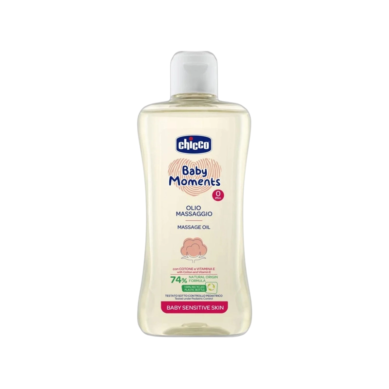 Vaji i masazhit, me strukturën e tij ideale për masazh, e bën të këndshëm këtë moment të rëndësishëm përkëdheljeje dhe marrëdhënieje me foshnjën. Formula e saj hidratuese e lë lëkurën e foshnjës të butë dhe aromatizuar këndshëm. Mund ta aplikoni edhe në rast të lëkurës së thatë. Veprimi rritet nëse e përdorni pas vajit të banjës Chicco Natural Sensation.